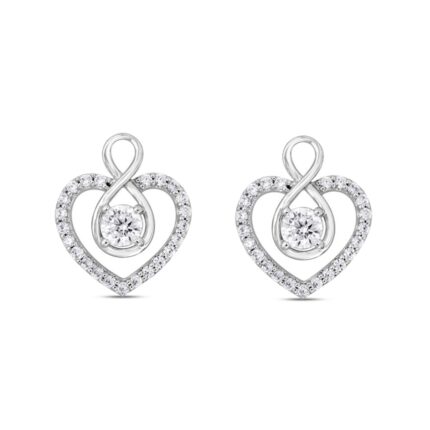 LADIES EARRINGS 1CT ROUND DIAMOND 14K WHITE GOLD