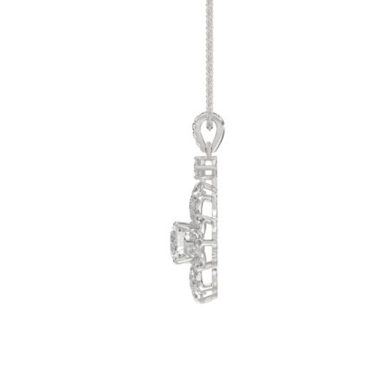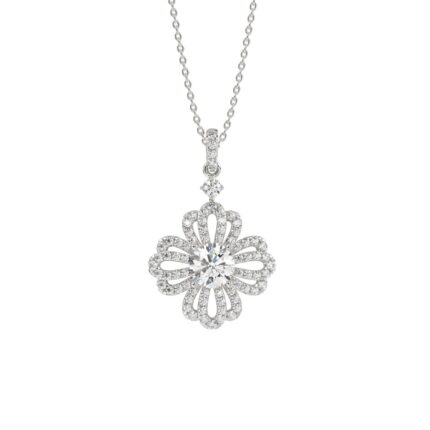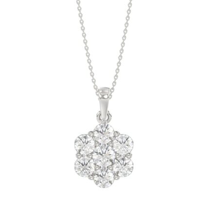 1 1/2Ct Round Diamond Flower Pendant In 14K White Gold Luxury Floral Diamond Pendant For Women (Color F-G -Clarity Vs1/Vs2)