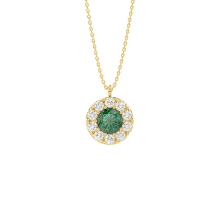 14K YELLOW GOLD 1.00CT ROUND/EMERALD DIAMOND LADIES PENDANT (CENTER STONE GREEN EMERALD ROUND DIAMOND 5/8CT)