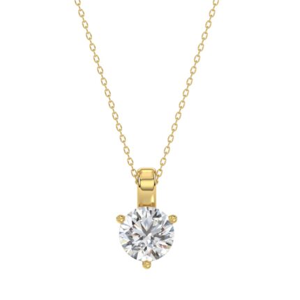 14K YELLOW GOLD 1.00CT ROUND DIAMOND SOLITAIRE PENDANT WITH CHAIN (TALON CLAWS)