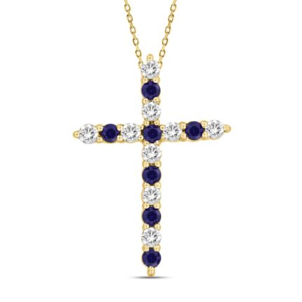 14K YELLOW GOLD 3/4CT ROUND DIAMOND LADIES PENDANT (BLUE SAPPHIRE ROUND DIAMOND 3/8CT)