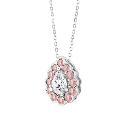 ETERNAL BLUSH COLLECTION LADIES NECKLACE 3/4CT ROUND/PEAR DIAMOND 14K WHITE GOLD (CENTER STONE PINK PEAR DIAMOND 1/2CT)
