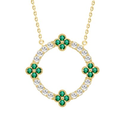 14K YELLOW GOLD 5/8CT ROUND/ROUND EMERALD GREEN DIAMOND LADIES PENDANT