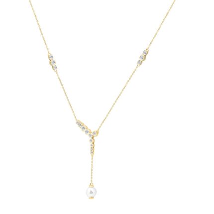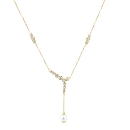 14K Yellow Gold Pearl Drop Necklace For1/2Ct Round Diamond Luxury Ladies Jewelry (Color F-G -Clarity Vs1/Vs2)