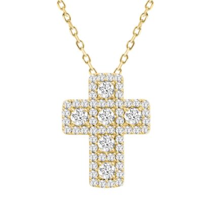 LADIES CROSS PENDANT WITH CHAIN 1CT ROUND DIAMOND 14K YELLOW GOLD