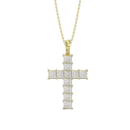 LADIES CROSS PENDANT WITH CHAIN 2 3/4CT PRINCESS DIAMOND 14K YELLOW GOLD