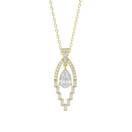LADIES PENDANT 1 1/2CT ROUND/BAGUETTE/PEAR DIAMOND 14K YELLOW GOLD