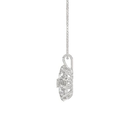 LADIES PENDANT 1CT ROUND/MARQUISE/OVAL DIAMOND 14K WHITE GOLD WITH CHAIN (CENTER STONE EMERALD OVAL DIAMOND (1 1/4CT)