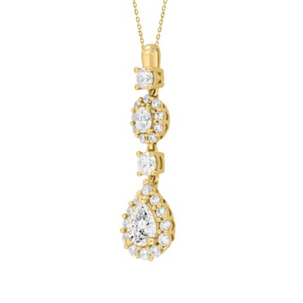 LADIES PENDANT WITH CHAIN 2CT PEAR/ROUND/OVAL DIAMOND 14K YELLOW GOLD