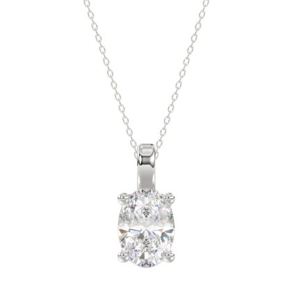 LADIES SOLITAIRE PENDANT 2CT OVAL DIAMOND 14K WHITE GOLD