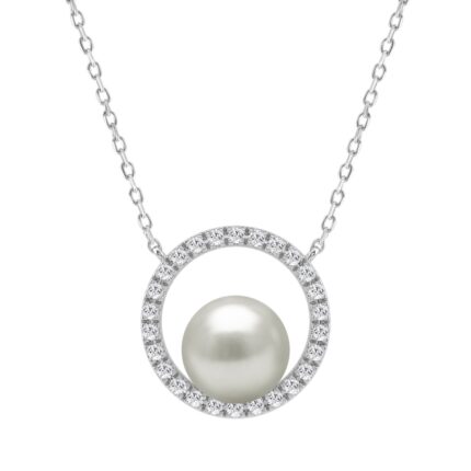 Luxury 10K White Gold 1/4Ct Round Diamond & Pearl Necklace For Women Classic Jewelry Gift (Color F-G -Clarity Vs1/Vs2)