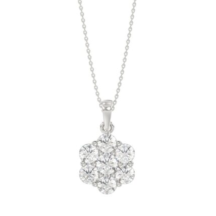 14K WHITE GOLD 1.00CT ROUND DIAMOND LADIES FLOWER PENDANT WITH CHAIN