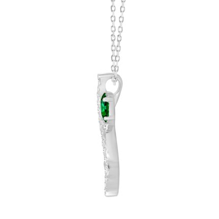 14K WHITE GOLD 1.00CT ROUND/GREEN EMERALD ROUND DIAMOND LADIES PENDANT