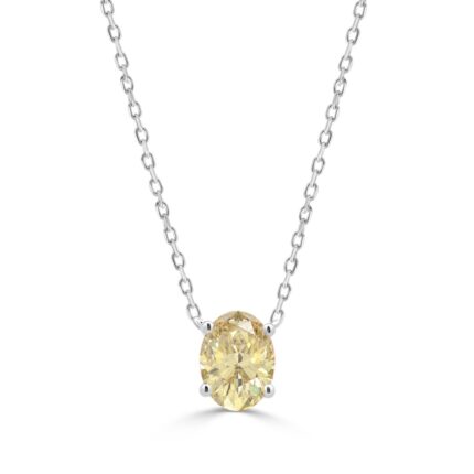 14K WHITE GOLD 1.00CT YELLOW OVAL DIAMOND LADIES PENDANT