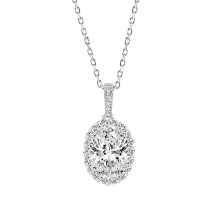 14K WHITE GOLD 2.00CT ROUND/OVAL DIAMOND LADIES PENDANT WITH CHAIN