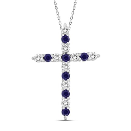 14K WHITE GOLD 3/4CT ROUND DIAMOND LADIES PENDANT (BLUE SAPPHIRE ROUND DIAMOND 3/8CT)
