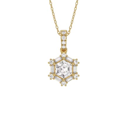 14K YELLOW GOLD 1.00CT ROUND/BAGUETTE/HEZAGON STEP CUT DIAMOND LADIES PENDANT