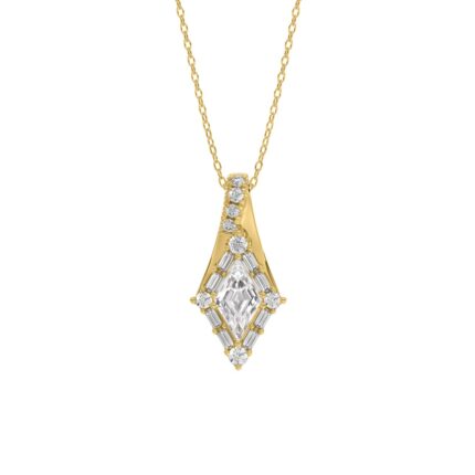 14K YELLOW GOLD 1.00CT ROUND/BAGUETTE/KITE STEP CUT DIAMOND LADIES PENDANT