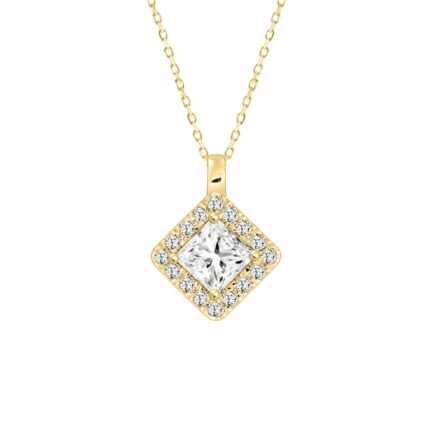 14K YELLOW GOLD 1 1/4CT ROUND/PRINCESS DIAMOND LADIES PENDANT WITH CHAIN (CENTER STONE PRINCESS DIAMOND 1CT