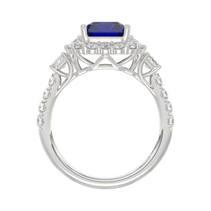 14K WHITE GOLD 4.00CT ROUND/ROUND BLUE SAPPHIRE DIAMOND LADIES RING