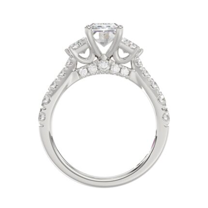 Luxury 14K White Gold 3 1/3Ct Round, Cushion & Cadillac Diamond Three-Stone Engagement Ring For Women With 2.00Ct Cushion Center Stone (Color F-G -Cla
