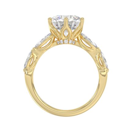 Luxury 14K Yellow Gold Bridal Ring for Ladies 3 3/4CT Round & Marquise Cut Diamonds 3.00CT Round Center stone (Color F-G -Clarity VS1/VS2)