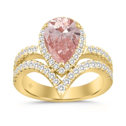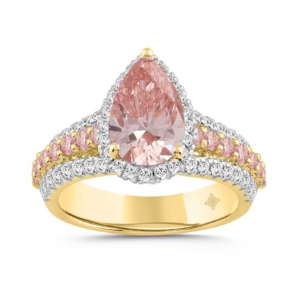 ETERNAL BLUSH COLLECTION LADIES RING 2 3/4CT ROUND/PEAR DIAMOND 14K YELLOW GOLD (CENTER STONE PINK PEAR DIAMOND 2CT)