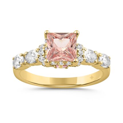 ETERNAL BLUSH COLLECTION LADIES RING 2CT ROUND/PRINCESS/OVAL DIAMOND 14K YELLOW GOLD (CENTER STONE PINK PRINCESS DIAMOND 1CT)