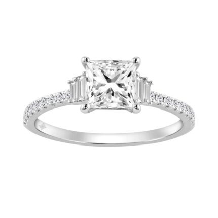 14K WHITE GOLD 1 1/3CT ROUND/BAGUETTE/PRINCESS DIAMOND LADIES RING (CENTER STONE PRINCESS DIAMOND 1CT)