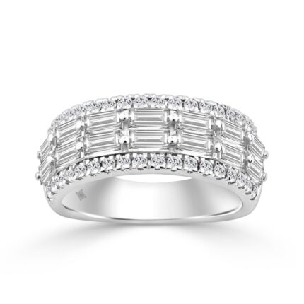 14K WHITE GOLD 1 1/4CT ROUND/BAGUETTE/PRINCESS DIAMOND LADIES BAND