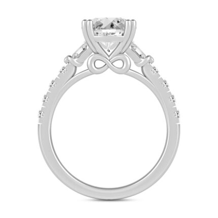 LADIES RING 2 1/2CT ROUND/BAGUETTE/PRINCESS DIAMOND 14K WHITE GOLD