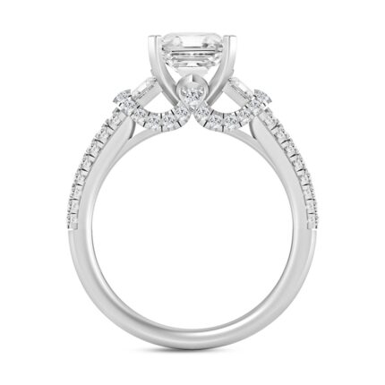 LADIES RING 2 1/2CT ROUND/BAGUETTE/EMERALD DIAMOND 14K WHITE GOLD (CENTER STONE EMERALD DIAMOND 2CT )