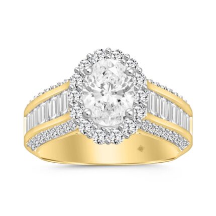LADIES RING 3 3/4CT ROUND/OVAL DIAMOND 14K YELLOW GOLD (CENTER STONE OVAL DIAMOND 3.00CT)