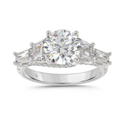 LADIES RING 3 3/4CT ROUND/TRAPEZOID/BAGUETTE DIAMOND 14K WHITE GOLD (CENTER STONE ROUND DIAMOND 2CT )