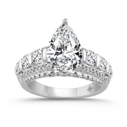 LADIES RING 4 1/4CT ROUND/PEAR/OVAL DIAMOND 14K WHITE GOLD (CENTER STONE PEAR DIAMOND 3CT )