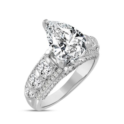 LADIES RING 4 1/2CT ROUND/PEAR DIAMOND 14K WHITE GOLD (CENTER STONE PEAR DIAMOND 3CT )
