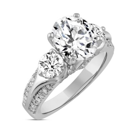 LADIES RING 4 1/4CT ROUND/OVAL DIAMOND 14K WHITE GOLD (CENTER STONE OVAL DIAMOND 3CT )