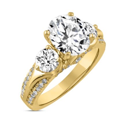LADIES RING 4 1/4CT ROUND/OVAL DIAMOND 14K YELLOW GOLD (CENTER STONE OVAL DIAMOND 3CT )