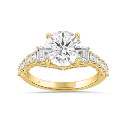 LADIES RING 4CT ROUND/EMERALD DIAMOND 14K YELLOW GOLD (CENTER STONE ROUND DIAMOND 3.00CT)