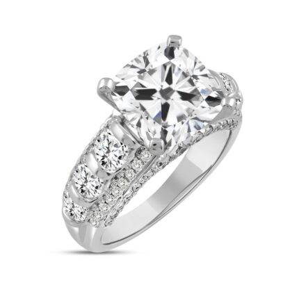 LADIES RING 5 1/4CT ROUND/CUSHION DIAMOND 14K WHITE GOLD (CENTER STONE CUSHION DIAMOND 4CT )