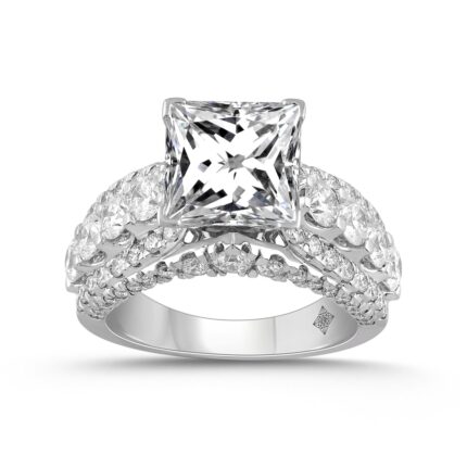 LADIES RING 5 1/4CT ROUND/PRINCESS DIAMOND 14K WHITE GOLD (CENTER STONE PRINCESS DIAMOND 3CT )