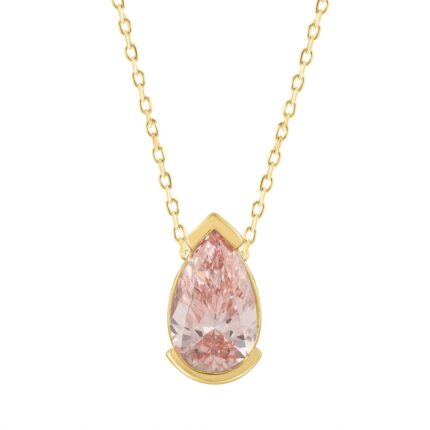 ETERNAL BLUSH COLLECTION 1 1/2CT LADIES SOLITAIRE PENDANT WITH CHAIN PEAR DIAMOND 14K YELLOW GOLD (CENTER STONE PINK PEAR DIAMOND 1 1/2CT)