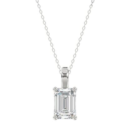 LADIES SOLITAIRE PENDANT WITH CHAIN 2CT EMERALD DIAMOND 14K WHITE GOLD