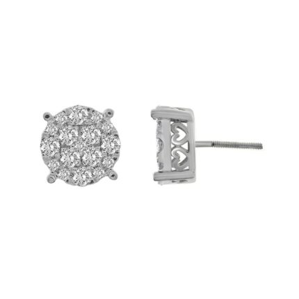 LADIES STUD EARRINGS 1.50CT ROUND DIAMOND 10K WHITE GOLD