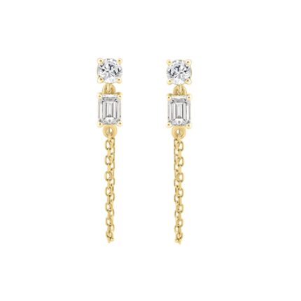 10K Yellow Gold 3/4CT Emerald/Round cut Diamond Elegant Ladies Earring (Color F-G -Clarity VS1/VS2)