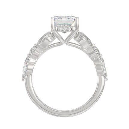 14K White Gold Emerald Cut Diamond Classic Bridal Ring for Ladies 4.00CT with Pear Round & Marquise Diamond 3.00CT Emerald Center stone (Color F-G