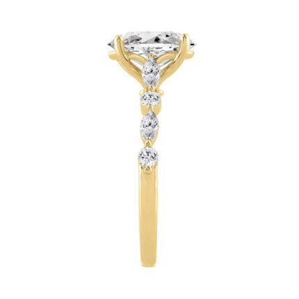 14K Yellow Gold Oval Diamond Fancy Engagement Ring for Ladies 2 1/2CT with Marquise & Round Diamond 2.00CT Oval Center stone (Color F-G -Clarity V