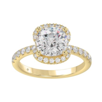 14K YELLOW GOLD 2 1/4CT ROUND/CUSHION DIAMOND LADIES RING (CENTER STONE CUSHION DIAMOND 2CT)