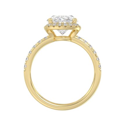 14K Yellow Gold 4 1/2CT ladies Round & Emerald-cut diamond halo engagement Ring 4.00CT Emerald Center stone (Color F-G -Clarity VS1/VS2)