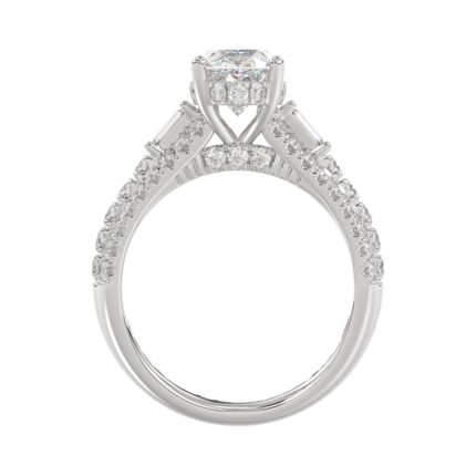 Classic 14K White Gold Ladies Diamond Ring 4.00CT Round Oval & Baguette Diamonds with 3.00CT Oval Center stone (Color F-G -Clarity VS1/VS2)